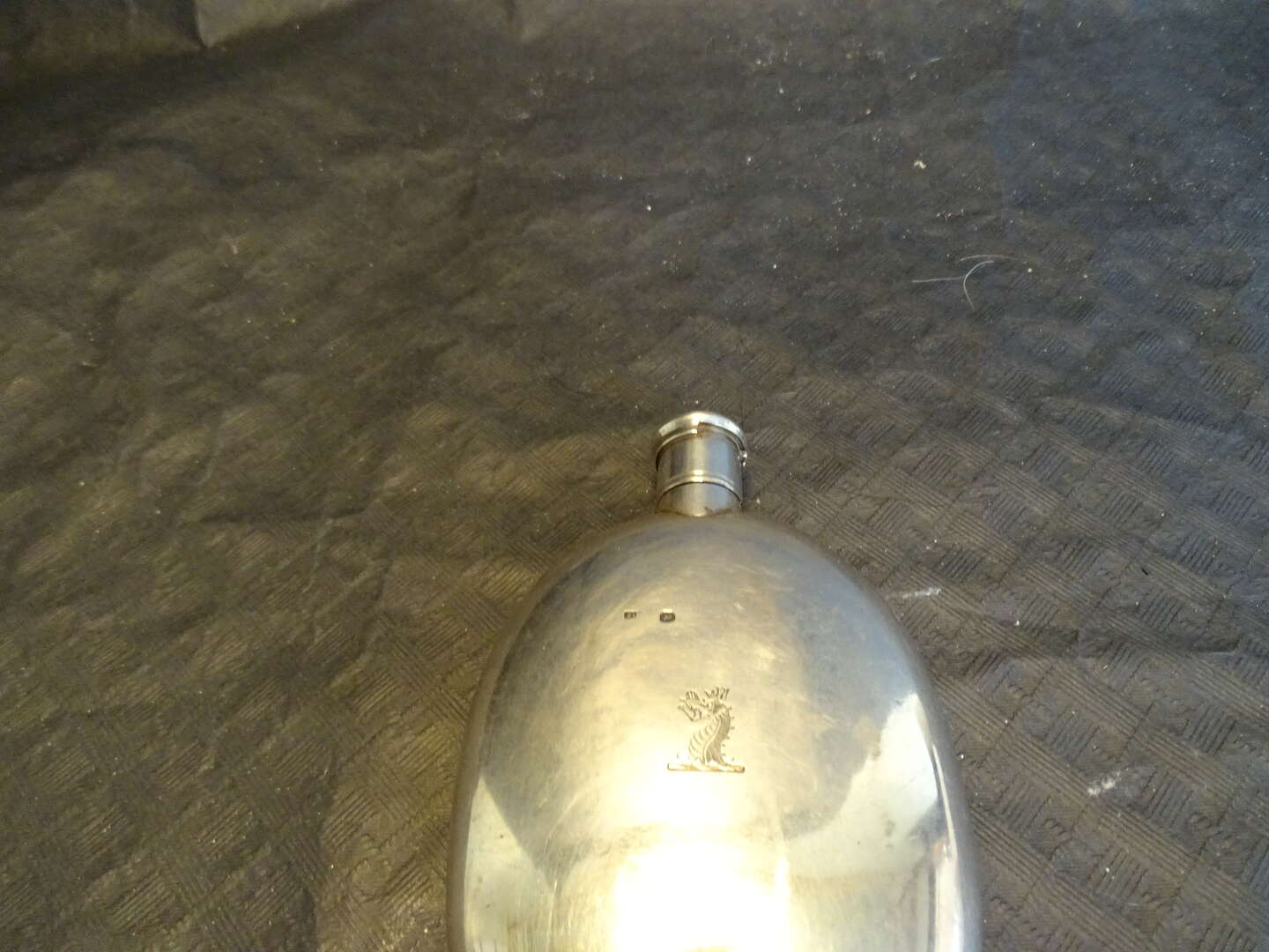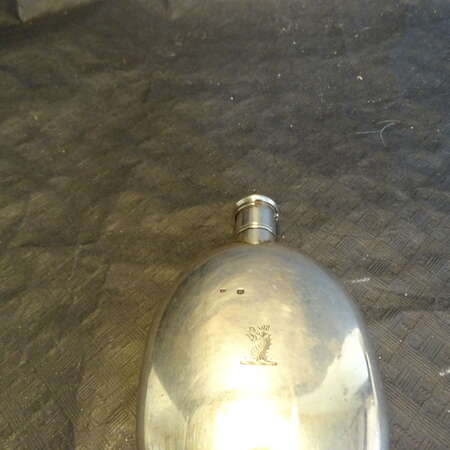 Thomas Dicks, circa 1840, London , Victorian era , perfume or scent bottle in 925 silver and silver gilt in oblong shape with baronet crest. The cap with an integrated long pipette can be screwed on . English city and Queen Victoria duty hallmarks and Gothic E letter date. Retailler's address at No.1 Saint James Street Light scratches. In very good ,fresh condition . Weight :138,7 gram Height :12,7 cm, width: 8 cm.