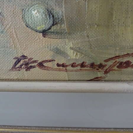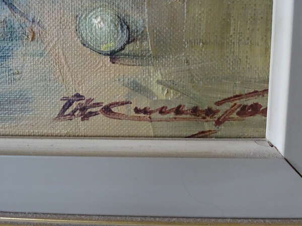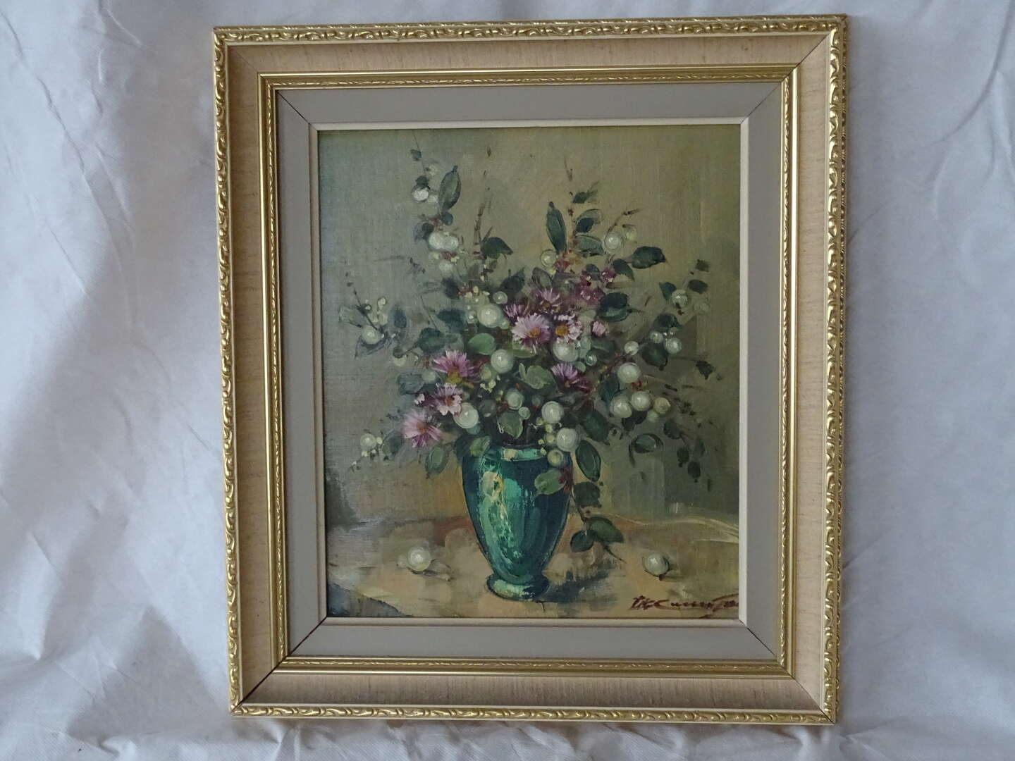 " Bloemenstilleven " Olieverf op doek , getekend , afm. 34 cm x 29 cm , met kader 47 cm x 42 cm.