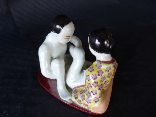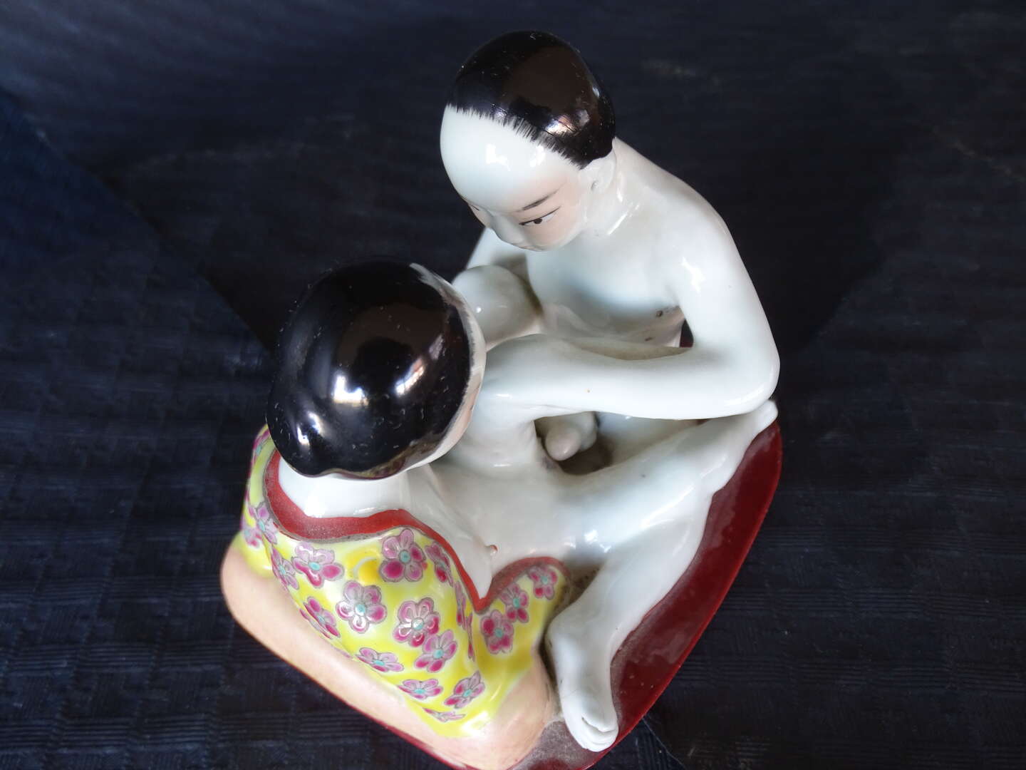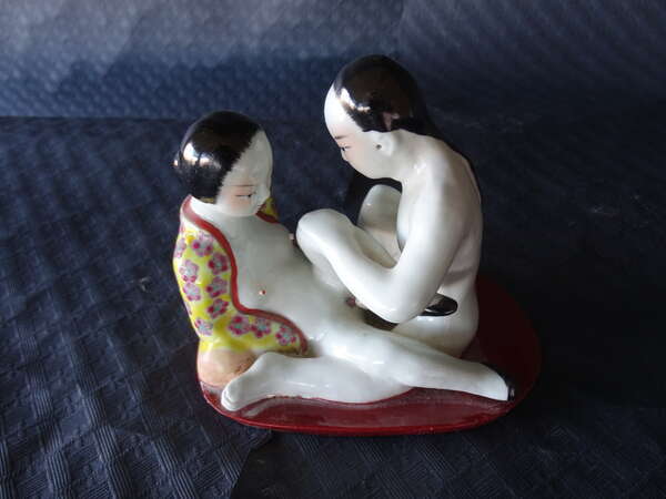 " Erotisch stel op voet " Porselein IMARI , ingoede staat , afm. L 13 cm x H 12 cm x B 10 cm