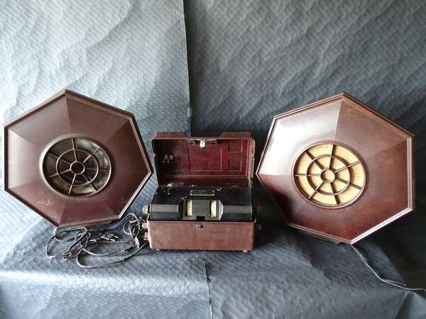 Radio Philips type 2531 + 2 luidsprekers type 2109 - Bakeliet , bouwjaar 1931.