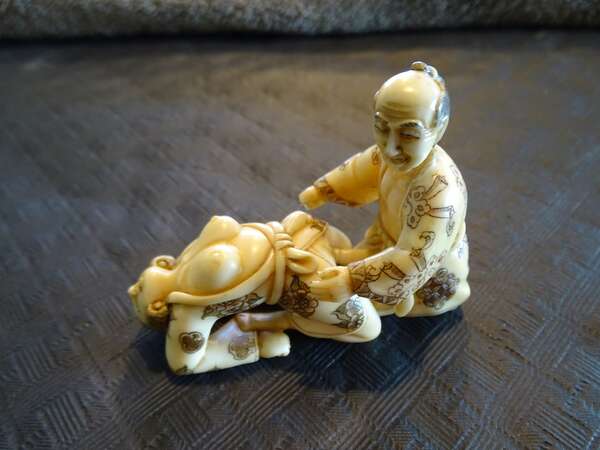 " Tweedelig erotisch stel " Netsuke ivory antiek