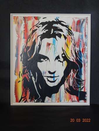 " BRITNEY SPEARS XX-XXII " Antoine Liesens , Acrylverf op doek , Spray , handgesigneerd , A54 Pop Art gallery uit Antwerpen , project : STARS, certificate of authenticity, Periode 2010-heden , afm. 2 cm x 70 cm x 60 cm . Met mooie witte kader 63 cm x 74 cm