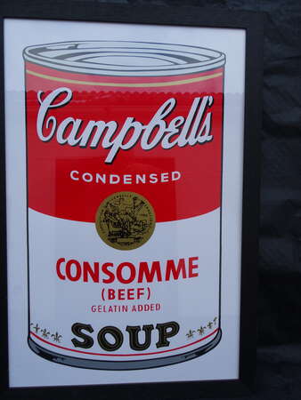 " Campbells CONSOMME" Andy Warhol , Amerikaanse school ,ART PRINT . Afm.: L 88 cm x B 56 cm. Met kader 63 cm x 94 cm.