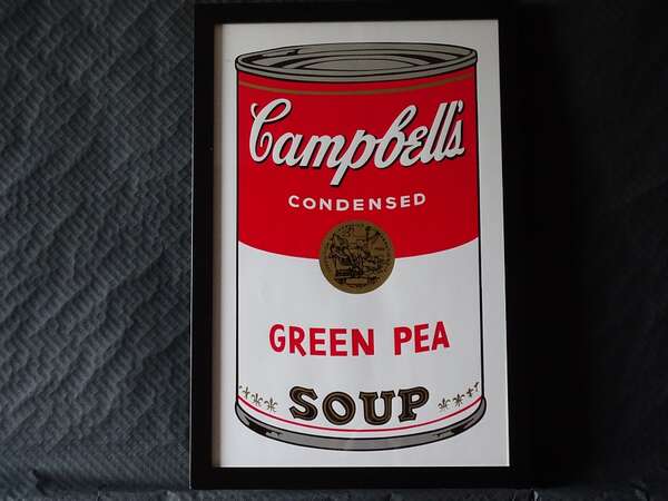 " Campbells GREEN PEA" Andy Warhol , Amerikaanse school , ART PRINT . Afm.: L 88 cm x B 56 cm. met kader 63 cm x 94 cm.