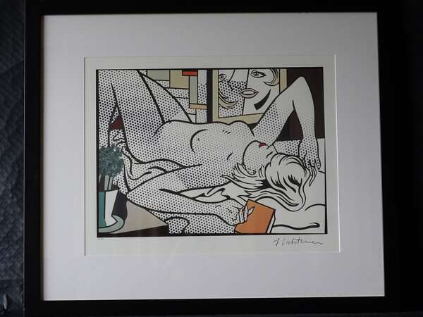 " NUDE" Gekleurde serigrafie , gelimiteerde oplage 58/199 , getekend Roy Lichtenstein , Afm.: L 66 cm x H 52 cm. Met kader 97 cm x 83 cm.