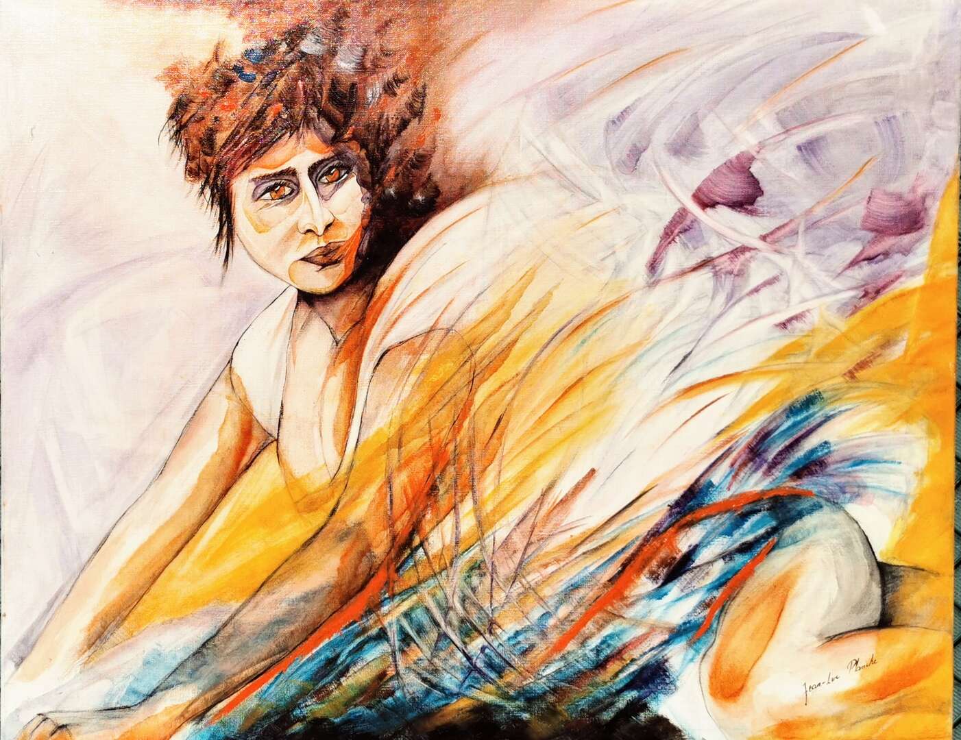 "Vanish veil " Jean- Luc Plancke , olieverf op doek . Geboren en getogen in Moorsele , West-Vlaanderen ( Belgium). Al op jonge leeftijd vervaardigde hij op didactische wijze portrettekeningen met Chinese inkt en houtskool en niet vlug later olieverf en pastelkrijt op doek. Hij was zeer goed bevriend met Rpger Van Belleghem ( 1928-2002). Expositie in Oostende, Eupen en verschillende kunstevents. Kenmerkend voor zijn werken is dat de vrouw op een melancholische manier centraal staat. Afm. werk 105 cm x 85 cm